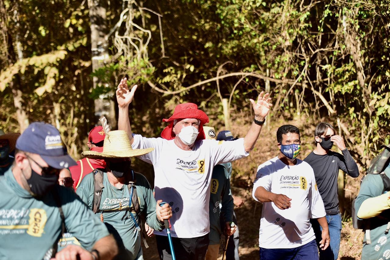 O governador Ronaldo Caiado participou, neste sábado (21), na cidade de Goiás, do encerramento da Expedição Desafiando Limites, que desbravou os mais de 300 quilômetros do Caminho de Cora Coralina, única trilha de poesias do mundo, que corta oito municípios, oito povoados e três unidades de conservação ambiental. Na reta final do trajeto, ele caminhou mais de oito quilômetros ao lado do ultramaratonista Márcio Villar, embaixador do percurso, que começou a trilha no sábado (14).