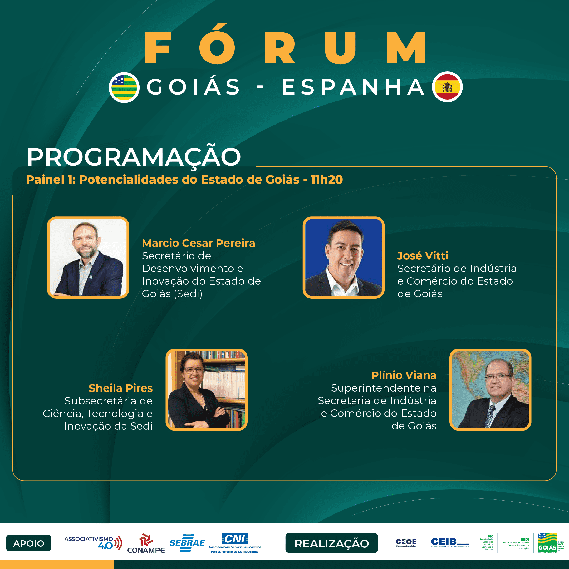 Representantes do Governo de Goiás vão apresentar as potencialidades do Estado com foco em inovação a integrantes do governo espanhol e empresários da iniciativa privada no dia 21 de julho, durante o Fórum Goiás-Espanha, realizado pela Secretaria de Desenvolvimento e Inovação (Sedi). O evento será realizado online, pelo canal da Sedi no YouTube, às 11 horas.
