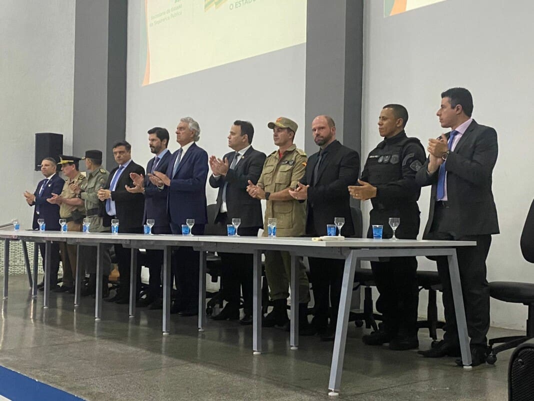 O delegado geral da Polícia Civil de Goiás, André Ganga esteve com o governador de Goiás, Ronaldo Caiado; o secretário de Segurança Pública, Renato Brum, e outras autoridades para balanço das ações das Forças de Segurança no estado, nesta terça-feira (18). Goiás apresentou redução em todos os índices criminais no primeiro semestre deste ano, quando comparado ao mesmo período de 2022.