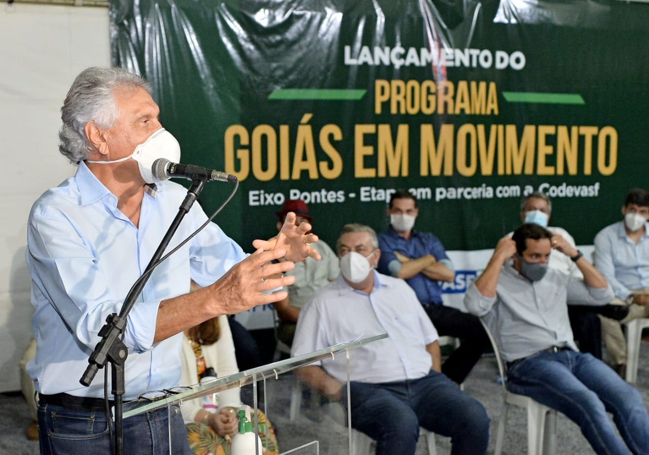 O governador Ronaldo Caiado lançou, nesta segunda-feira (03/05), em Formosa, região do Entorno do Distrito Federal, o Goiás em Movimento – Eixo Pontes, programa que vai acelerar as obras de infraestrutura em todo o Estado. Nesta primeira etapa, resultado de parceria entre a Agência Goiana de Infraestrutura e Transportes (Goinfra) e a Companhia de Desenvolvimento dos Vales do São Francisco e do Parnaíba (Codevasf), serão construídas 54 pontes em 13 municípios goianos, com aporte federal de R$ 21,8 milhões. Até 2022, meta é edificar 180 estruturas viárias em todo o Estado.