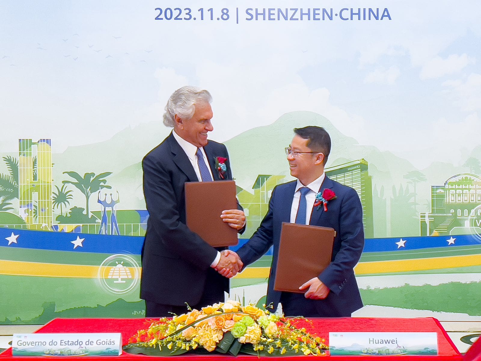 O Governo de Goiás fechou parceria, nesta terça-feira (08/11), com a multinacional de origem chinesa Huawei para desenvolver soluções tecnológicas voltadas ao serviço público estadual. O memorando de entendimento foi assinado pelo governador Ronaldo Caiado e pelo presidente da empresa, Sun Baocheng, em Shenzen, na China.