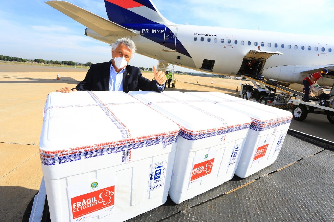 Todas as unidades da AstraZeneca serão utilizadas para aplicação da primeira dose. As do lote de CoronaVac serão metade para primeira dose e a outra para reforço. afirmou Caiado em coletiva de imprensa. “Esperamos, com esta remessa, atingir 100% dos cidadãos com 60 anos de idade”, projetou.