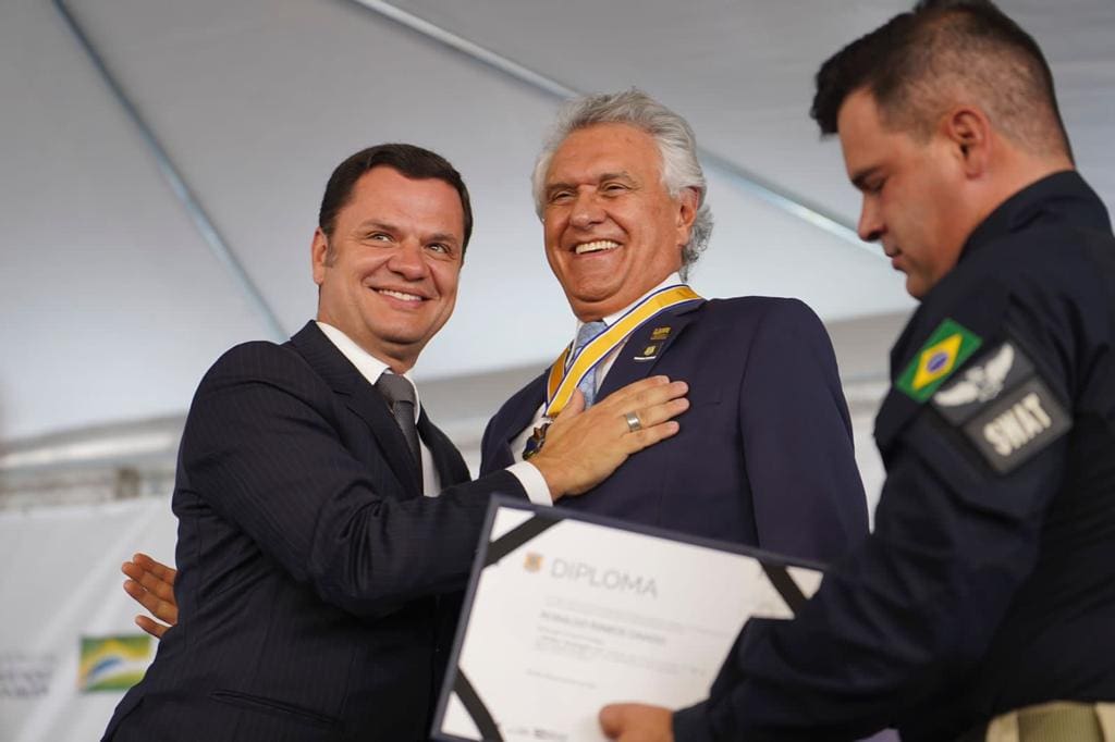 Durante a solenidade, realizada no Setor Marista, o governador foi homenageado com a medalha Washington Luís, entregue pelo titular do Ministério da Justiça (MJ), e pelo diretor-geral da PRF em Goiás, Silvinei Vasques, e que simboliza o reconhecimento às personalidades que contribuíram na promoção ou no cumprimento da missão da instituição.