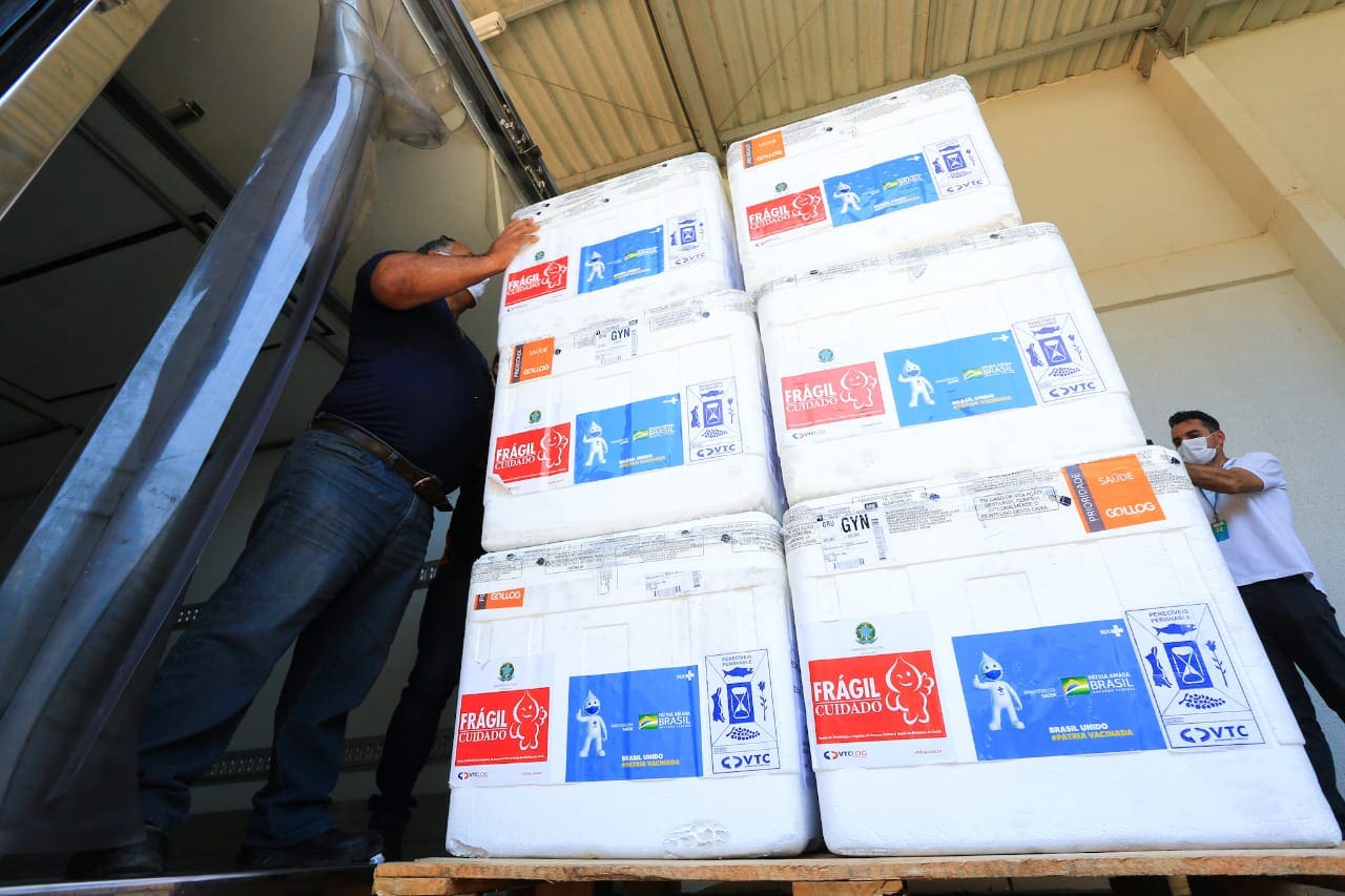Pelas redes sociais, o governador Ronaldo Caiado anunciou a chegada de mais 190.870 doses de vacinas contra a Covid-19. Nesta sexta-feira (1º), às 23h45, Goiás recebe 84.400 doses da AstraZeneca para aplicação de segunda dose. E no sábado (2), chegam 106.470 vacinas da Pfizer, que serão usadas no reforço da vacinação de trabalhadores da Saúde e em pessoas com mais de 60 anos de idade.