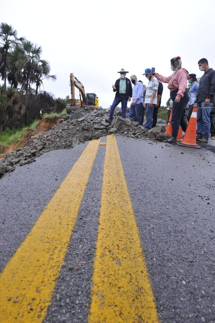 Um dos pontos afetados fica na rodovia estadual GO-118, entre os municípios de Alto Paraíso e Teresina de Goiás. No local, onde parte da pista desmoronou com a força da água, equipes da Agência Goiana de Infraestrutura e Transportes (Goinfra) trabalham para liberar parte da pista para o tráfego de veículos pequenos até sexta-feira (7/1), conforme anunciado pelo governador, durante inspeção no local. O trânsito de caminhões e outros veículos pesados seguirá restrito.