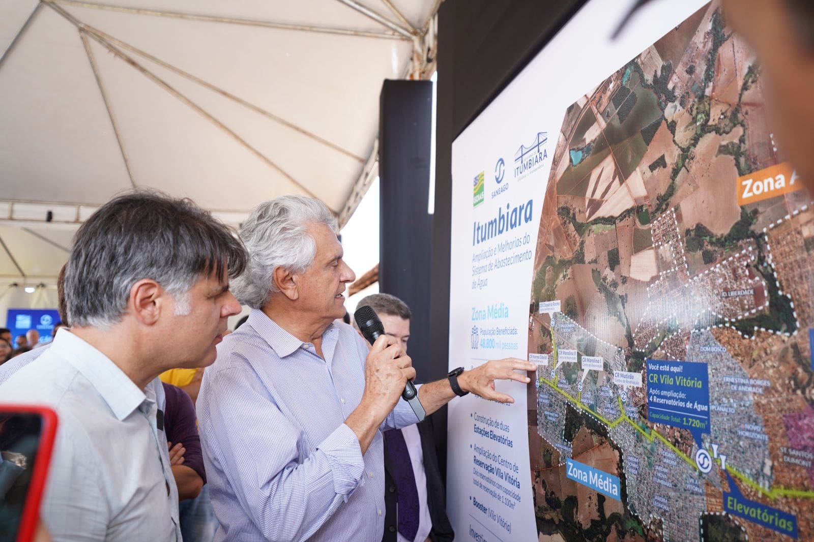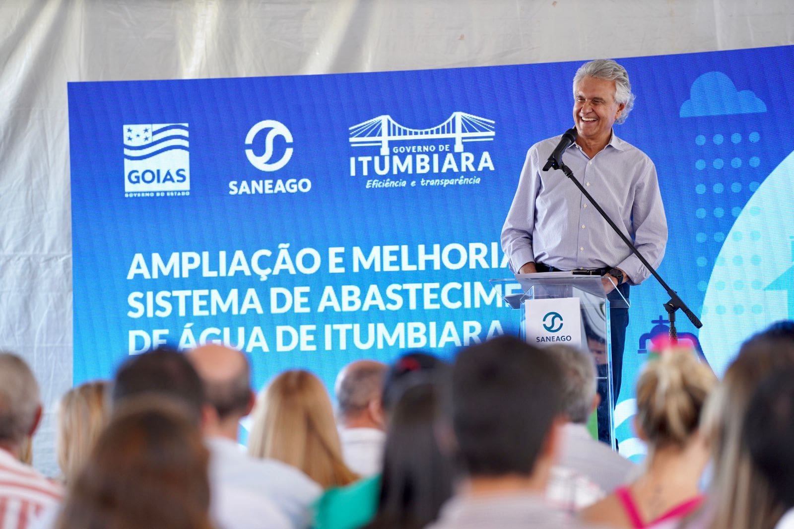 O governador Ronaldo Caiado autorizou, nesta terça-feira (21), obras de ampliação do sistema de abastecimento de água de Itumbiara, na Região Sul de Goiás. Em solenidade no Parque de Exposições Agropecuária da cidade, Caiado assinou ordem de serviço que prevê investimentos, via Companhia Saneamento de Goiás S/A (Saneago), na ordem de R$ 10 milhões, com intervenções que se estenderão por 27 bairros e vão atender 49 mil moradores do município.