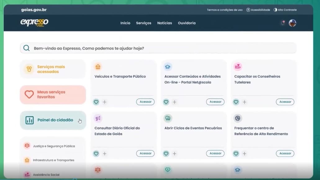 O portal do programa Expresso ganhará uma nova versão, com tecnologia mais eficiente e design intuitivo. Resultado da constante evolução dos serviços digitais no Estado de Goiás, ele traz uma série de recursos que facilitam a navegação, como a busca interativa e a possibilidade de criar um painel dos serviços favoritos ou mais acessados pelo usuário.