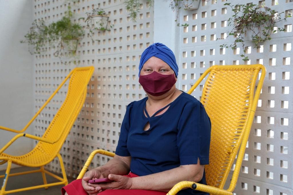 “Nem na pandemia parei a quimioterapia. Não moro em Goiânia, e o custo de me manter aqui durante o tempo de tratamento é muito alto. Mas, graças ao Governo de Goiás, recebo essa grande ajuda na minha vida”, afirma Iraci Pereira da Silva, 61 anos. Natural de Campos Belos de Goiás, ela está na unidade da OVG para tratamento de um câncer de mama.