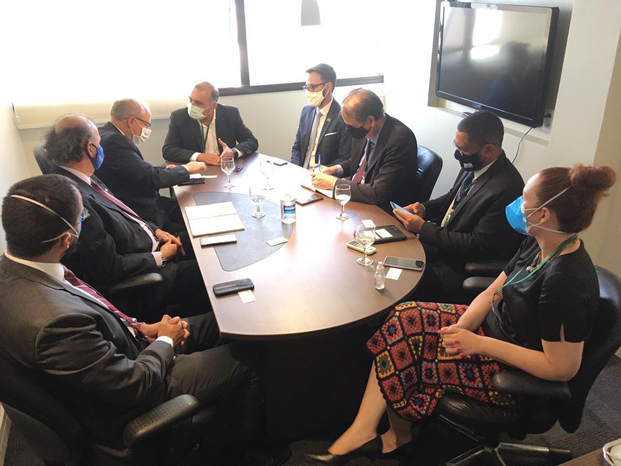 Participaram também da reunião o assessor especial da Seapa, Aurélio Resende, a gestora pública da Superintendência de Negócios Internacionais da Sedi, Sara Silva, e os assessores do Gabinete de Representação de Goiás em Brasília, Bruno Neri e Cláudio Jorge Siqueira.