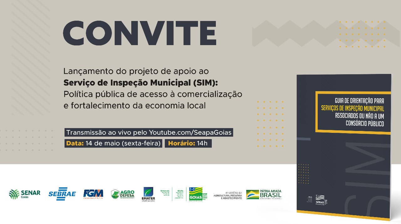 O Governo de Goiás, por meio da Secretaria de Estado de Agricultura, Pecuária e Abastecimento (Seapa), Secretaria da Retomada, Agência Goiana de Defesa Agropecuária (Agrodefesa) e Agência Goiana de Assistência Técnica, Extensão Rural e Pesquisa Agropecuária (Emater), lança na próxima sexta-feira (14/05) ações de apoio e incentivo a criação e operacionalização do Serviço de Inspeção Municipal (SIM). O evento será em formato virtual, transmitido pelo canal da Seapa no Youtube (www.youtube.com/seapagoias), a partir das 14 horas, e é voltado para prefeitos, secretários de agricultura, bem como profissionais da área de sanidade.
