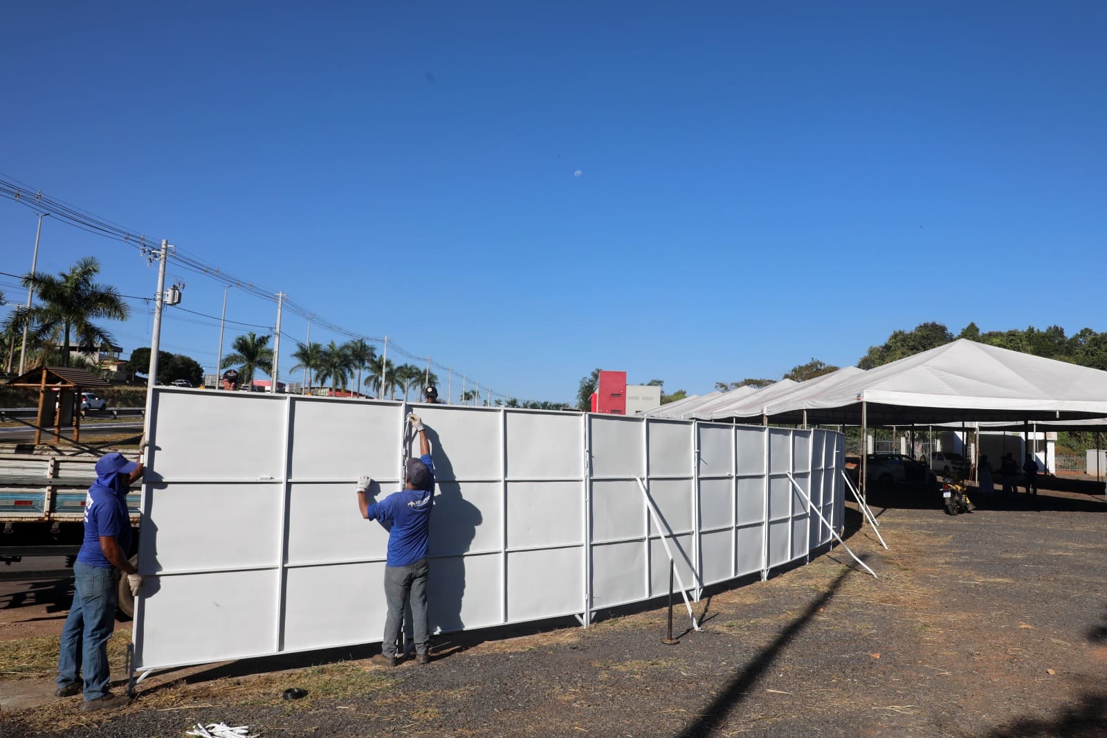 O canteiro de obras chama a atenção de quem passa no KM 10 da GO-060, a Rodovia da Fé, em Trindade. O governo estadual, por meio do Goiás Social e da Organização das Voluntárias de Goiás, está montando a estrutura do tradicional Centro de Apoio ao Romeiro (CAR), com apoio da Agência Goiana de Infraestrutura e Transportes (Goinfra).