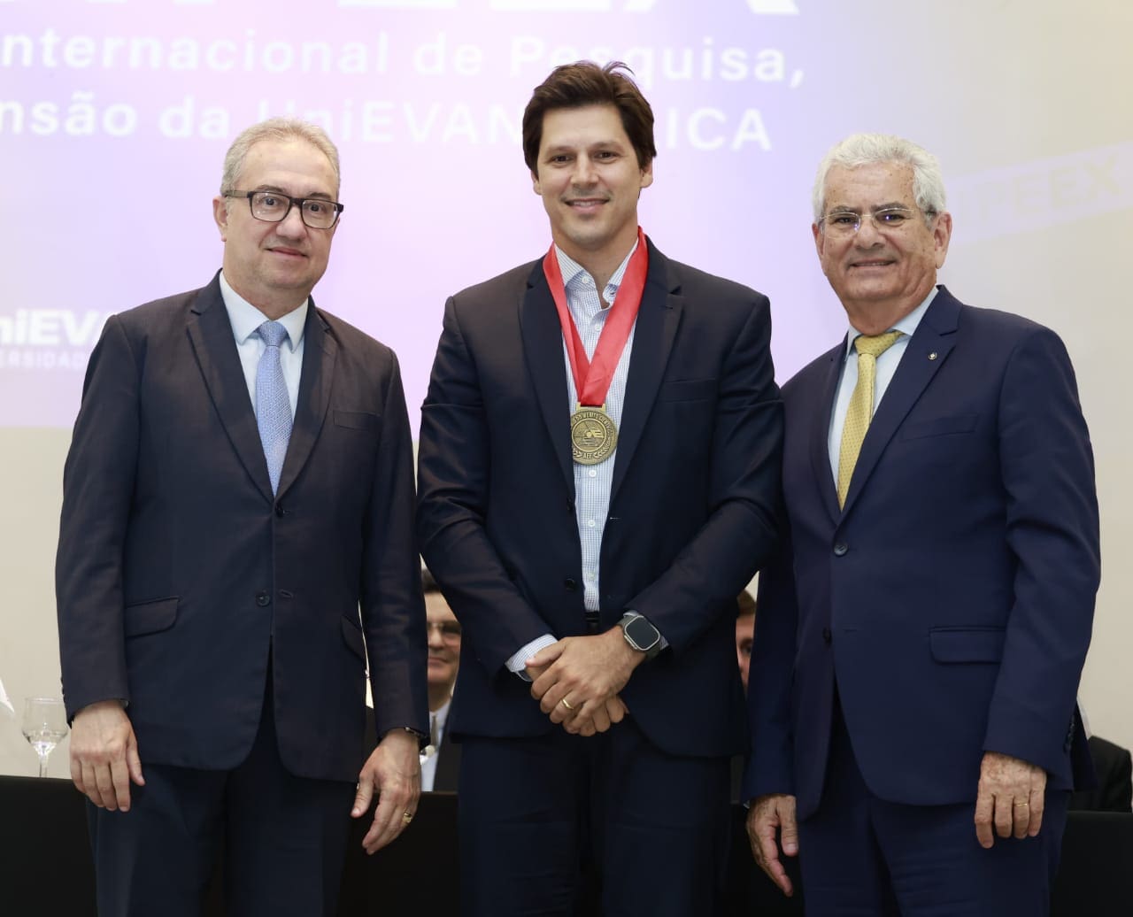 Durante a abertura do congresso, o vice-governador também foi homenageado com a Medalha do Mérito Científico concedida pela Associação Educativa Evangélica. Ele recebeu a honraria das mãos do presidente da entidade e chanceler da UniEvangélica, Augusto Cezar Ventura, e do reitor Carlos Hassel Mendes da Silva.