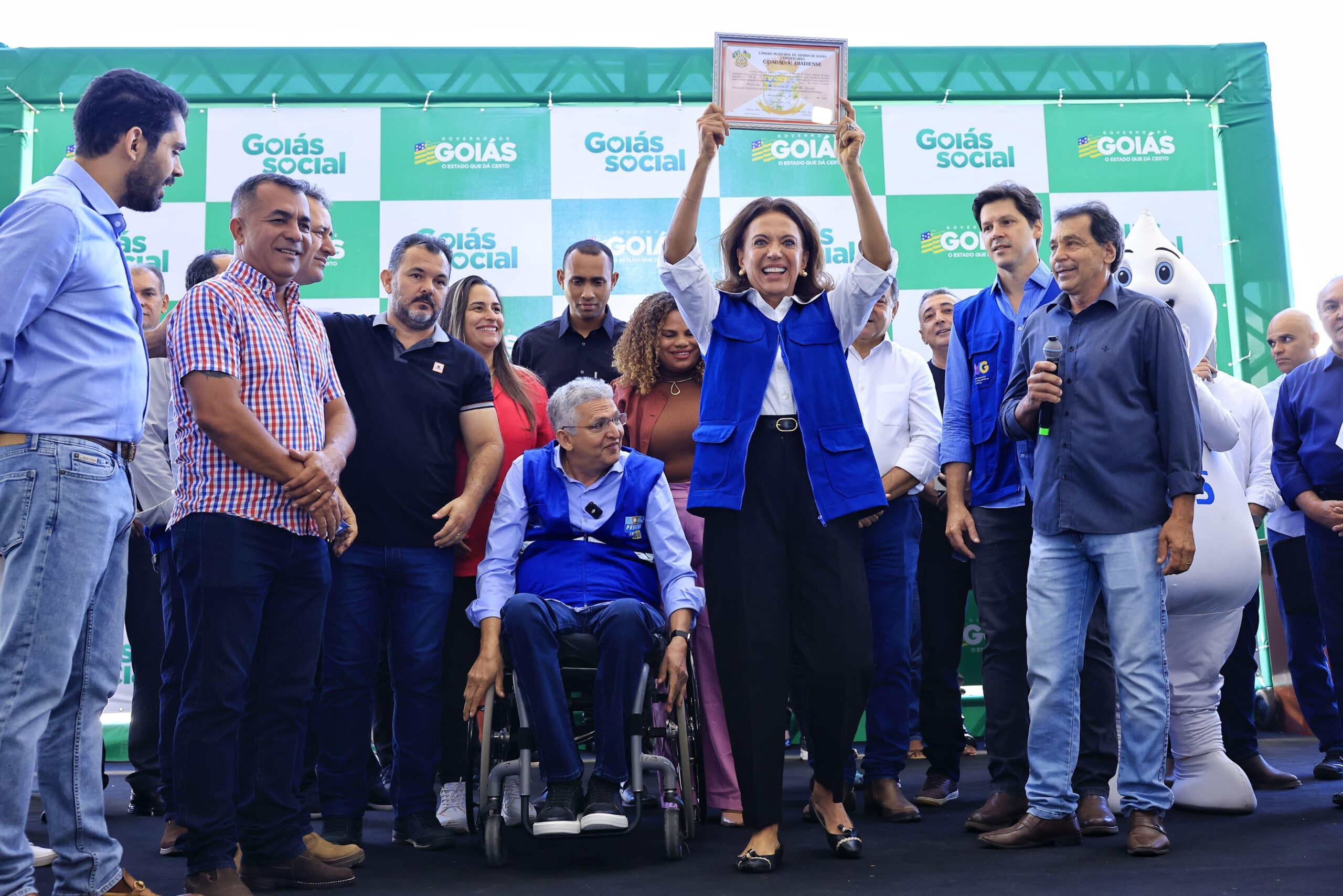 Durante a cerimônia, ela recebeu o título de cidadã abadiense, assistiu a apresentações culturais e entregou cartões de programas sociais como Mães de Goiás, Dignidade e Goiás Por Elas. Citou também o objetivo de reformar e equipar os Centros de Referência de Assistência Social (Cras) dos 246 municípios goianos e apoiar as famílias que possuem integrantes com necessidades especiais.