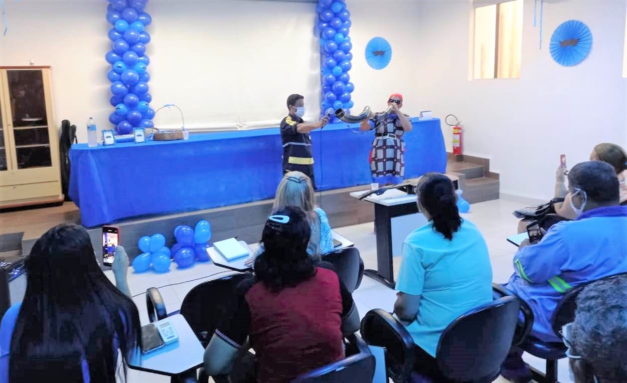 Os participantes, vestidos de azul, gostaram da maneira como o assunto sério foi exposto. “Uma mensagem simples e objetiva, de forma divertida. Muito produtiva”, definiu o colaborador Alberto Batista. “Achei muito bacana, passou a mensagem com muito humor”, afirmou a colaboradora Luciana Louzada.