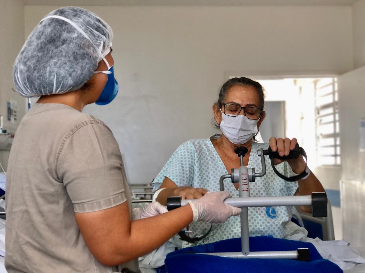 “A gente nem imagina que uma brincadeira dessas pode fazer tão bem. Eu estou fazendo, ao mesmo tempo, atividade psicológica, fisioterapia motora e respiratória”, celebra a paciente. Ela fala isso enquanto aproveita para brincar um pouco com a fisioterapeuta da unidade do Governo de Goiás, que vai até o leito e, entre uma atividade e outra, exercita a paciente com os estímulos.