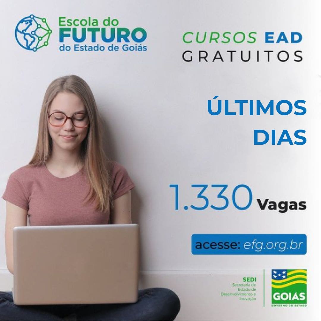 As Escolas do Futuro do Estado de Goiás (EFG) estão com 1.330 vagas abertas e gratuitas para cursos de capacitação, qualificação e técnico, na modalidade EaD e presenciais. As inscrições vão até o proximo domingo (6). As oportunidades são para as unidades de ensino Luiz Rassi (Aparecida de Goiânia), José Luiz Bittencourt (Goiânia) e Sarah Kubitscheck (Santo Antônio do Descoberto).