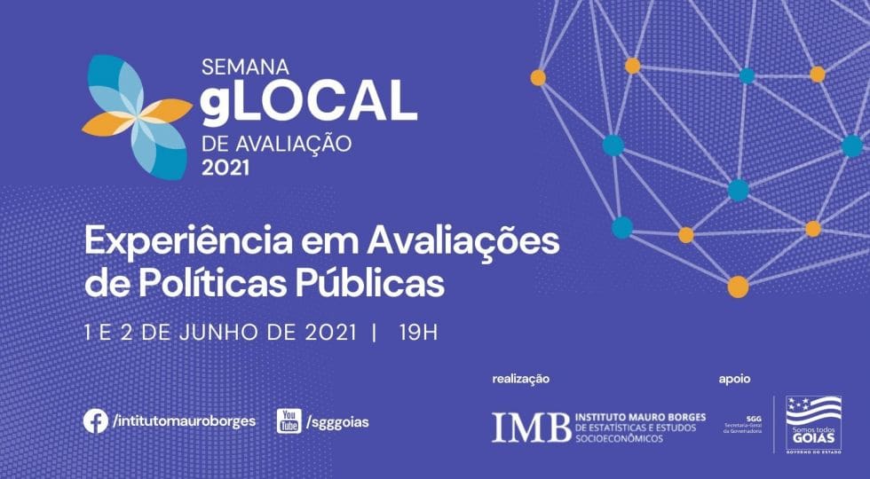 Nos próximos dias 1 e 2 de junho, o Instituto Mauro Borges de Estatísticas e Estudos Socioeconômicos (IMB), órgão jurisdicionado a Secretaria-Geral da Governadoria (SGG), promoverá evento virtual inédito em Goiás, voltado à avaliação de políticas públicas, tendo um dia exclusivo para análise de estudos em andamento no IMB. A iniciativa marca o início da cultura avaliativa no Estado de Goiás, e integra a Semana de Avaliação gLOCAL, voltada à promoção de eventos de compartilhamento de conhecimento e experiências relacionadas à prática de monitoramento e avaliação de políticas públicas (M&A) em todo o mundo.