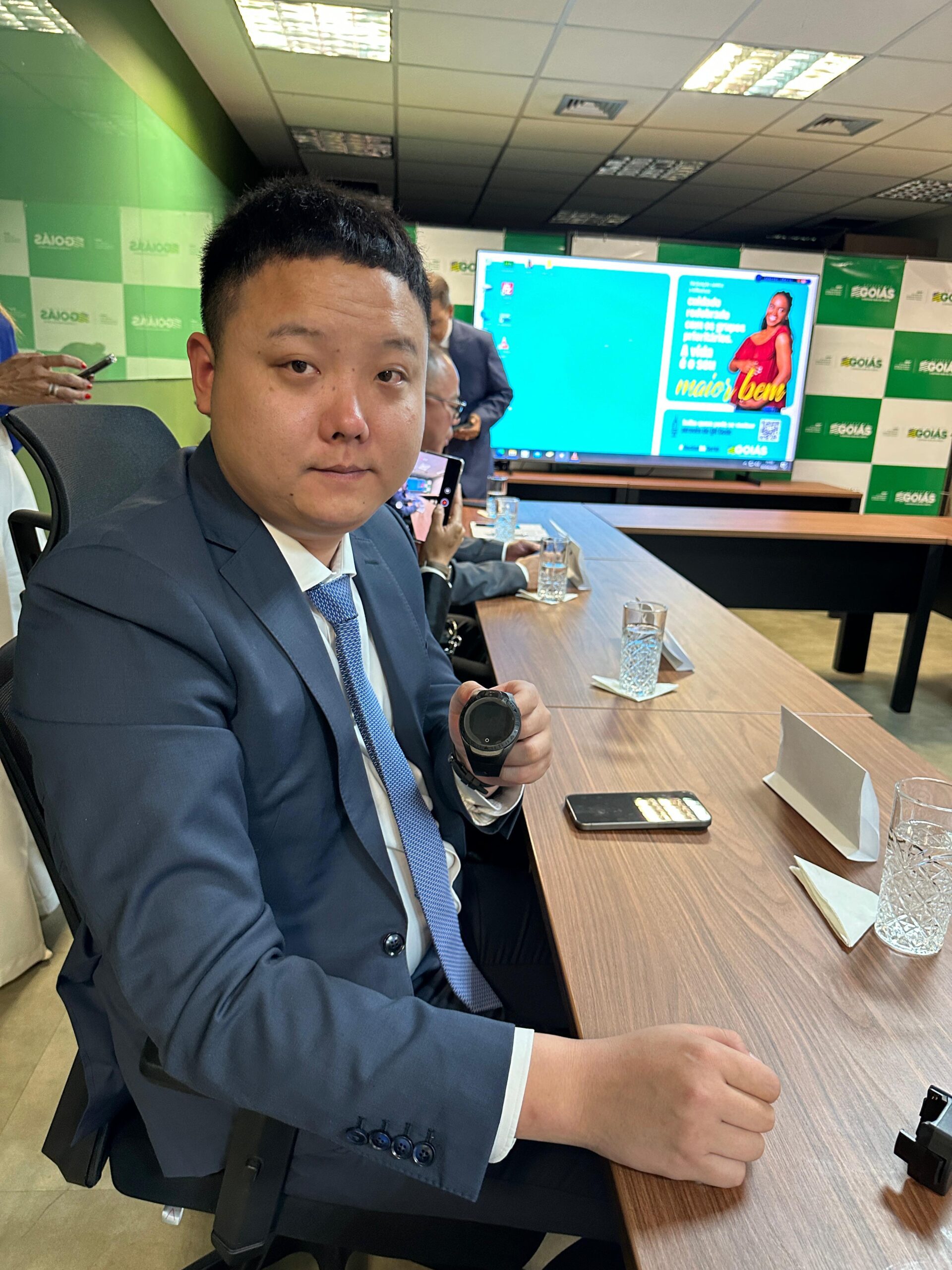 Um dos investidores chineses, Kevin Wo, apresentou um dispositivo de alta tecnologia para monitoramento de pessoas sob supervisão judicial. Proposta inicial prevê importação de 20 mil unidades. Equipamentos serão oferecidos à SSP-GO (Fotos: Sedf-GO)