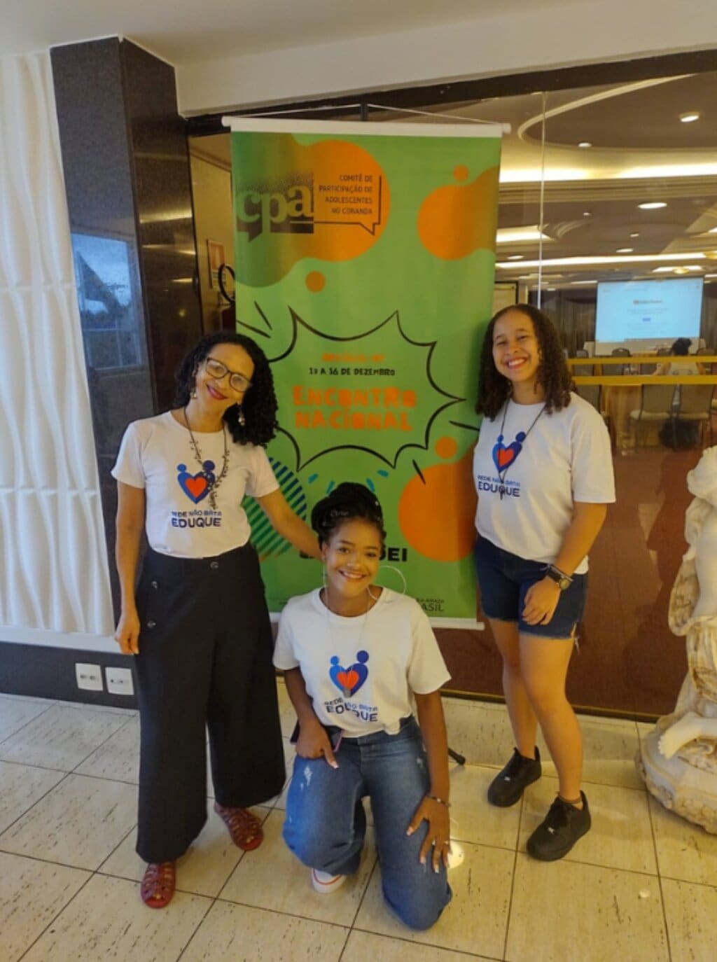 As representantes do Comitê de Participação de Adolescentes – Goiás (CPA-GO) Safira Rodrigues; jovem quilombola da comunidade Kalunga Vão do Moleque, em Cavalcante; e Aline Ferreira, de Goiânia, participam do Encontro CPA Nacional, que teve início na última terça-feira (13/12) e segue até a próxima sexta-feira (16/12), em Brasília. A entidade é vinculada ao Conselho Nacional dos Direitos da Criança e Adolescente (Conanda).
