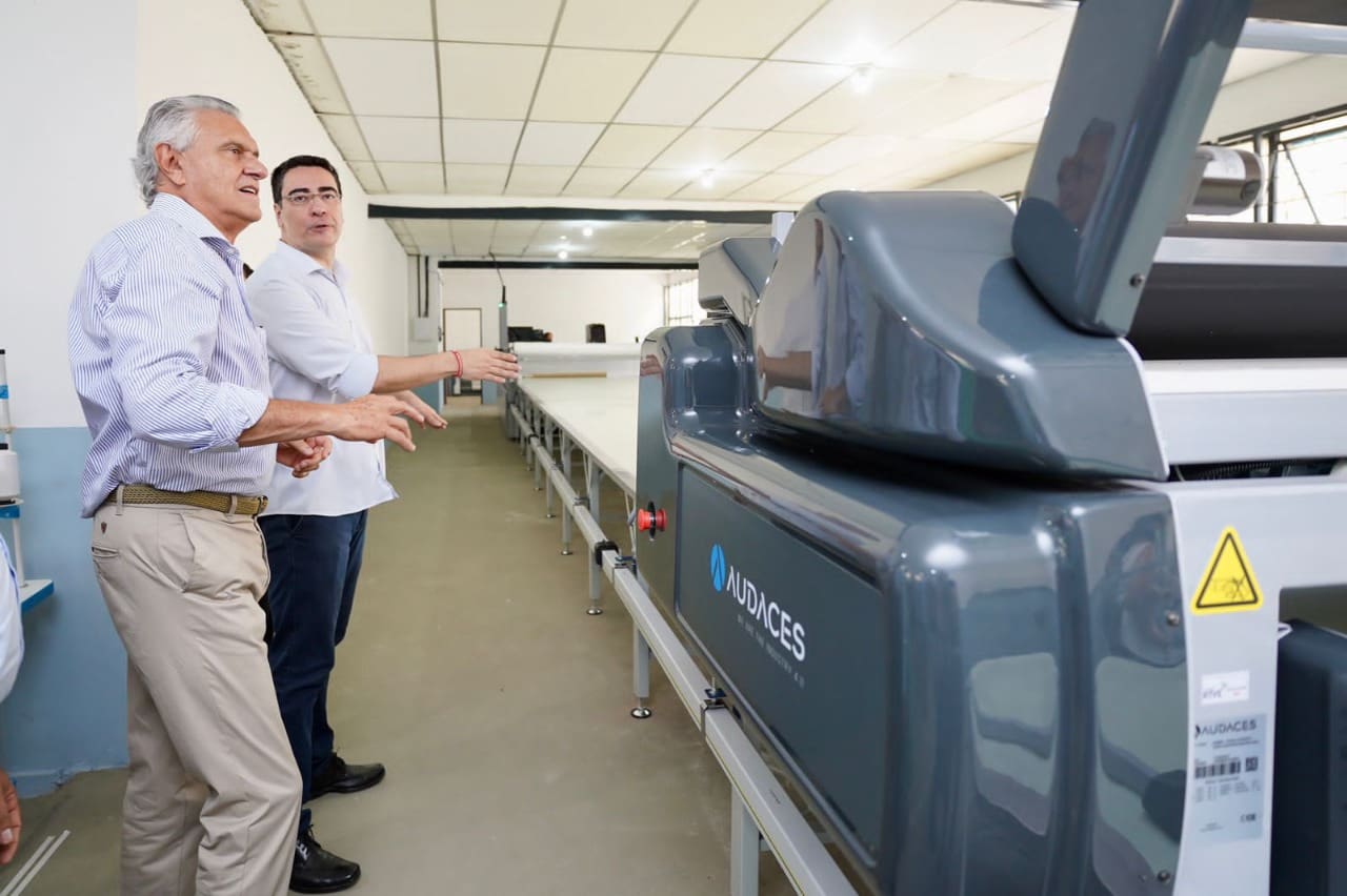 O governador Ronaldo Caiado entregou uma máquina têxtil de corte automático adquirida por R$ 1,4 milhão, nesta sexta-feira (11/11), na cidade de Goiás. O equipamento será disponibilizado para o setor de confecção do município e é o quinto entregue pelo Governo de Goiás nesta gestão, como parte de uma estratégia para estimular a cadeia da moda, que prevê investimentos de R$ 344 milhões em todo o estado.