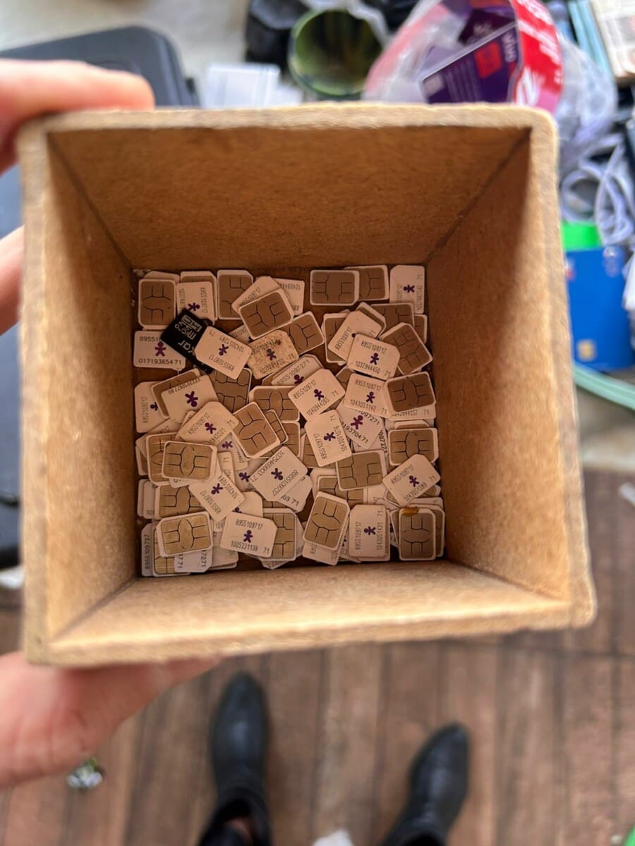 Também foram encontrados 141 chips de celulares, uma munição calibre 9mm, aproximadamente R$ 3 mil em espécie e três cadernos com anotações referentes a vítimas, com os respectivos números de celulares, a correlação do número e familiar pelos quais os investigados se passariam para aplicar a fraude, bem como senhas em banco de dados – Serasa e SPC – para pesquisas de novas vítimas e e-mails falsos para abertura de contas bancárias.