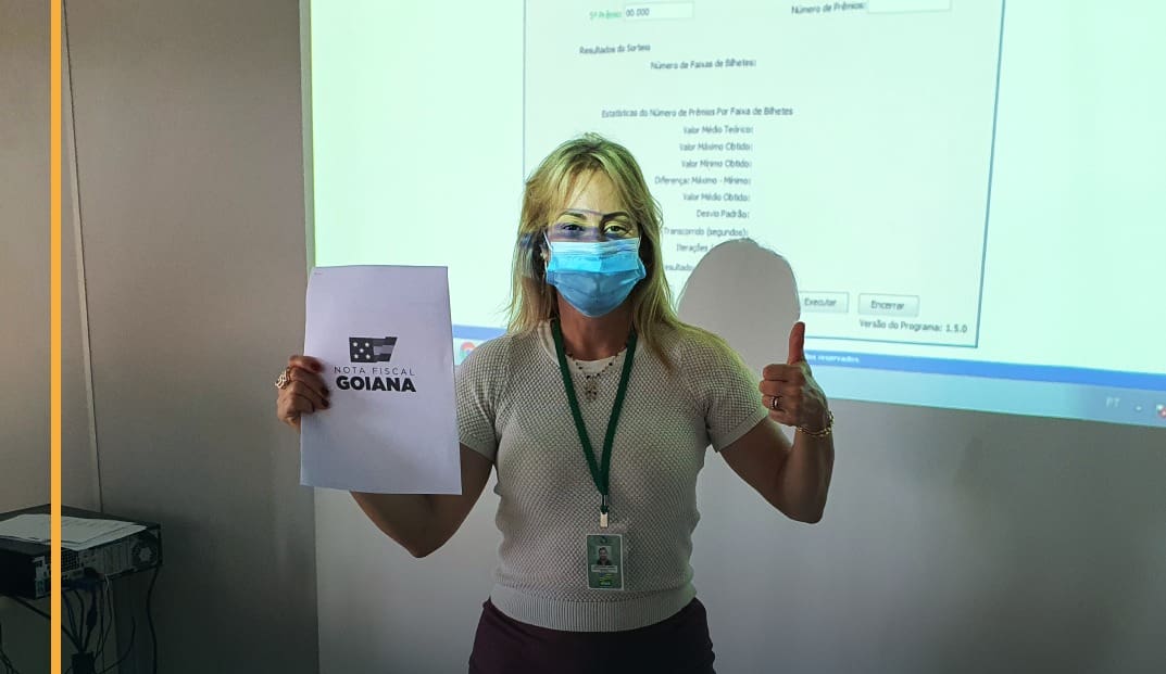 O Governo de Goiás, por meio da Secretaria da Economia, realizou na sexta-feira (05/11), o 7º sorteio eletrônico do Programa Nota Fiscal Goiana (NFG). Como ocorre todos os meses, foram sorteados 158 prêmios no valor total de R$ 200 mil. A solenidade contou com a participação da secretária da Economia, Cristiane Schmidt, e do coordenador do NFG, Leonardo Vieira de Paula.