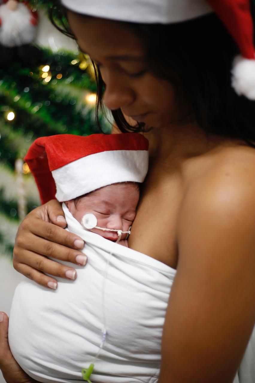 No Hospital Estadual da Mulher (HEMU), o espírito natalino ganhou forma em sorrisos, olhares e abraços. Em uma ação especial, pacientes do Alojamento Conjunto (ALCON) e da Unidade de Cuidados Intensivos Neonatais (UCIN) Convencional participaram de um ensaio fotográfico que trouxe acolhimento, carinho e esperança às famílias, reforçando a importância do cuidado humanizado.