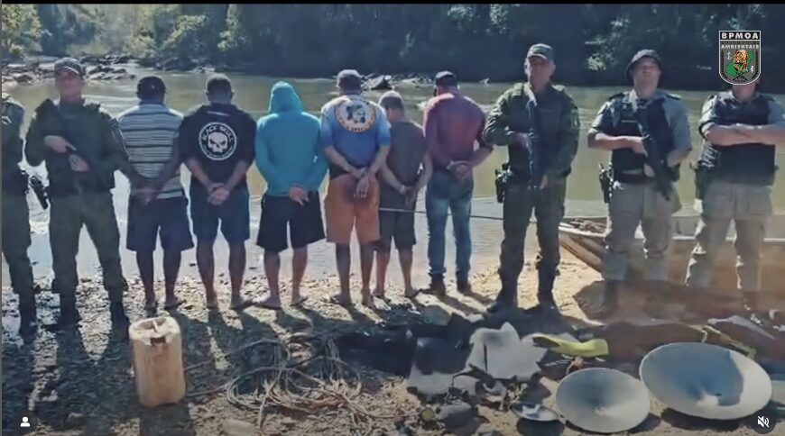 A estrutura estava instalada em uma área de difícil acesso e operava sem qualquer tipo de licença ambiental. Durante a abordagem, os policiais encontraram um responsável pela operação e outras cinco pessoas submetidas a condições degradantes de trabalho, consideradas análogas à escravidão.