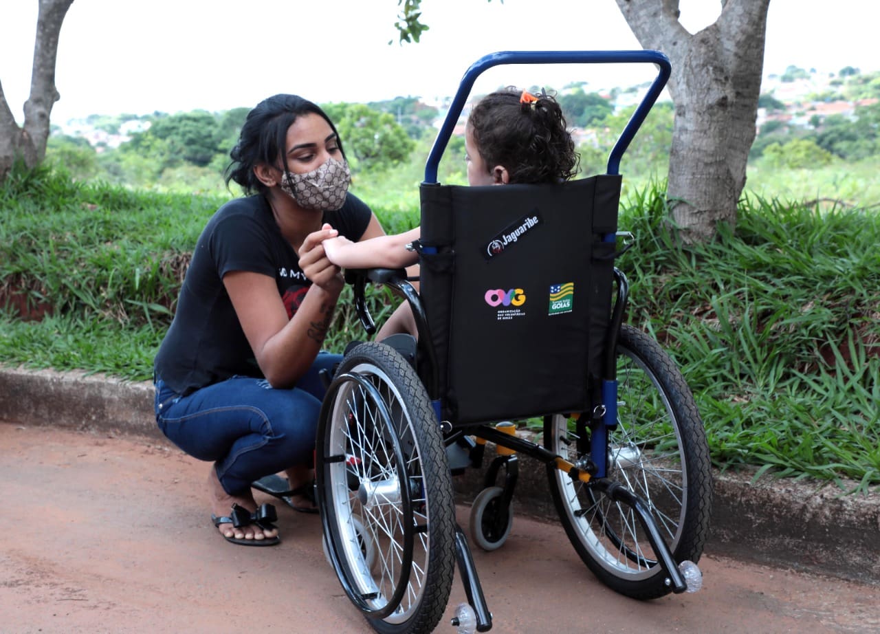 A locomoção da pequena B.E.N.S, de 3 anos, está mais fácil desde o mês passado. Ela, que praticamente perdeu todos os movimentos em decorrência de uma meningite tuberculosa, é uma das 32 crianças que receberam do Governo Estadual, via Organização das Voluntárias de Goiás (OVG), uma cadeira de rodas padrão em 2021. Uma doação fundamental para quem tem no benefício ortopédico uma extensão do próprio corpo.