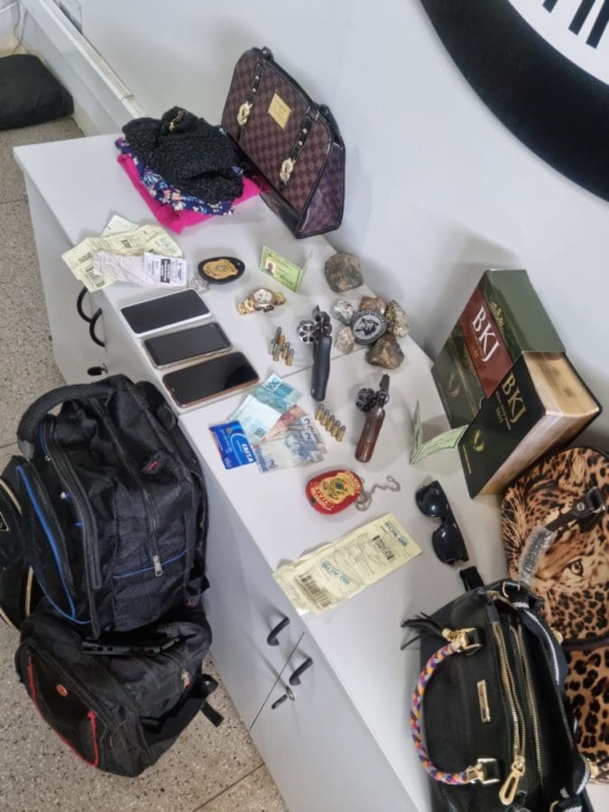 Nas malas da dupla, foram encontradas ainda duas armas de fogo. Os homens confessaram aos agentes o roubo praticado em uma casa de Ourilândia. “Falaram que entraram na casa errada pensando que tinha ouro e na verdade trouxeram pedras de níquel. Como já estavam lá, levaram tudo da família, inclusive bíblia. Os obrigaram a fazer um PIX para a conta de terceiros e vieram a Goiânia, com destino a Cuiabá, momento em que nós realizamos a prisão”, explicou o delegado.