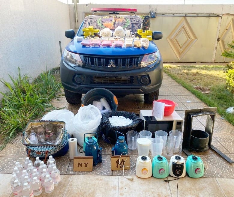 A Polícia Militar de Goiás estourou um laboratório de refino de drogas, no setor Jardim Clarissa, em Goiânia. Após diligências, policiais do 42º Batalhão da PMGO conseguiram apreender grande quantidade de drogas, além de insumos para refino de cocaína, prensa hidráulica e apetrechos utilizados na fabricação dos entorpecentes.