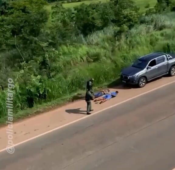 A ocorrência teve início após o veículo roubado, com registro em Brasília e já com placas adulteradas, ser identificado enquanto trafegava pela BR-153.