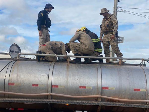 Nas proximidades da cidade de Itaberaí (GO), os policiais abordaram um caminhão tipo tanque, com placa da cidade de Ji Paraná (RO) e sendo conduzido por um indivíduo de 40 anos de idade.