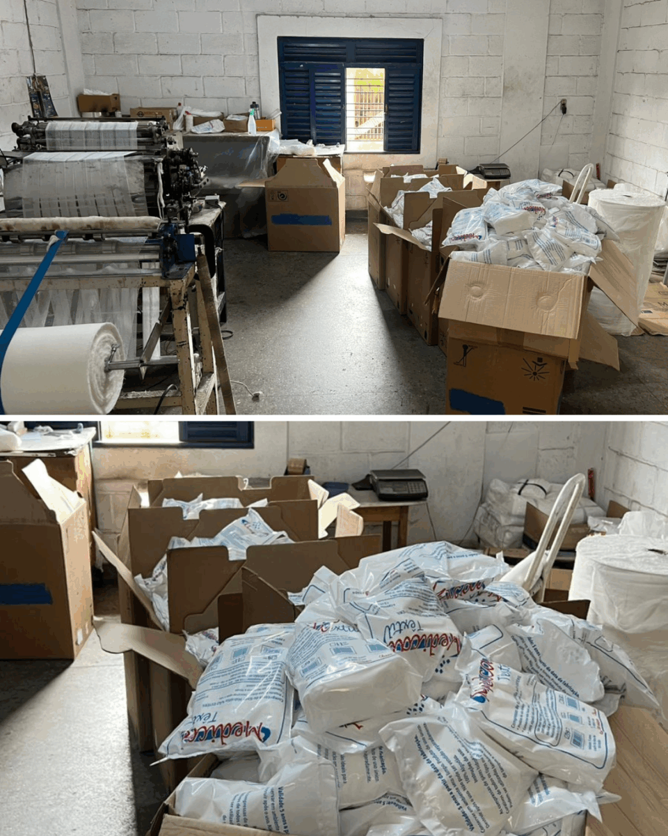 O material era produzido sem qualquer autorização da Anvisa e sem condições sanitárias adequadas, o que agrava o risco à saúde pública, mas já foi identificado pela polícia.