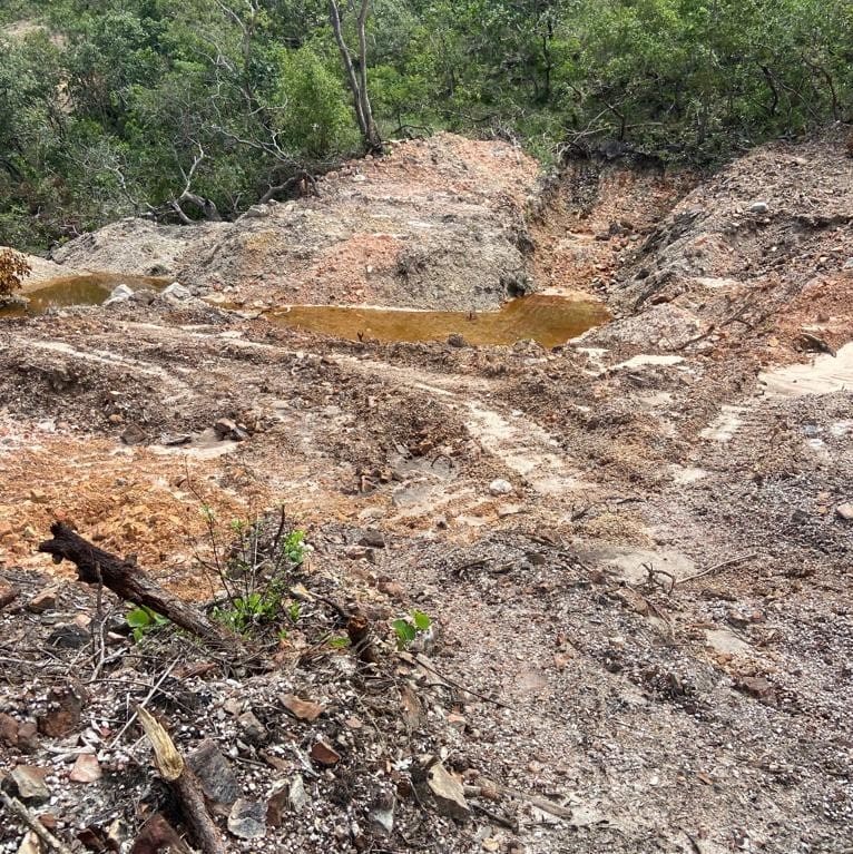 Chegando no local, um homem que estava na casa se identificou como vaqueiro da propriedade, dizendo que o proprietário reside no Distrito Federal, argumentando que não tinha conhecimento sobre a exploração de minérios ali, mas que um empresário de Niquelândia esteve com seu pessoal no local para fazer “pesquisas”.