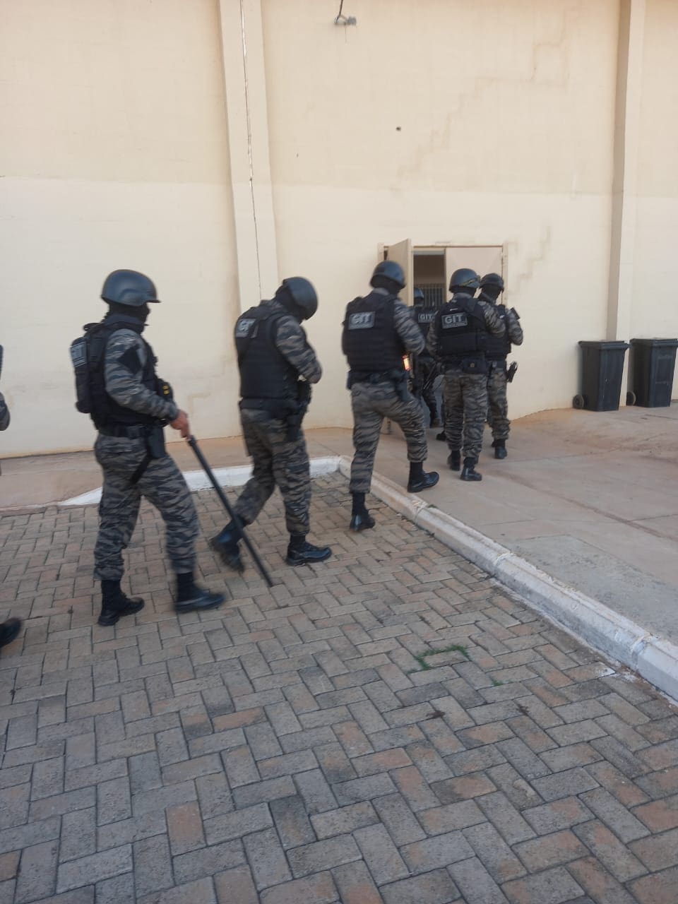 Policiais penais participaram, na manhã desta quarta-feira (10), da Operação Sintonia Goiás, realizada em 21 municípios goianos por meio de coordenação do Ministério Público de Goiás (MPGO). Ao todo foram cumpridos 70 mandados de prisão preventiva e 38 de busca e apreensão contra membros de uma facção criminosa. A operação é realizada simultaneamente em outros 12 Estados, como São Paulo, Minas Gerais e Paraná.
