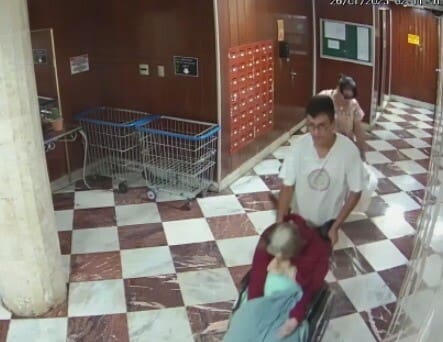 As vítimas foram mortas dentro do apartamento e retirados pelos suspeitos utilizando cadeira de rodas. As imagens foram captadas pelas câmeras de segurança do prédio.