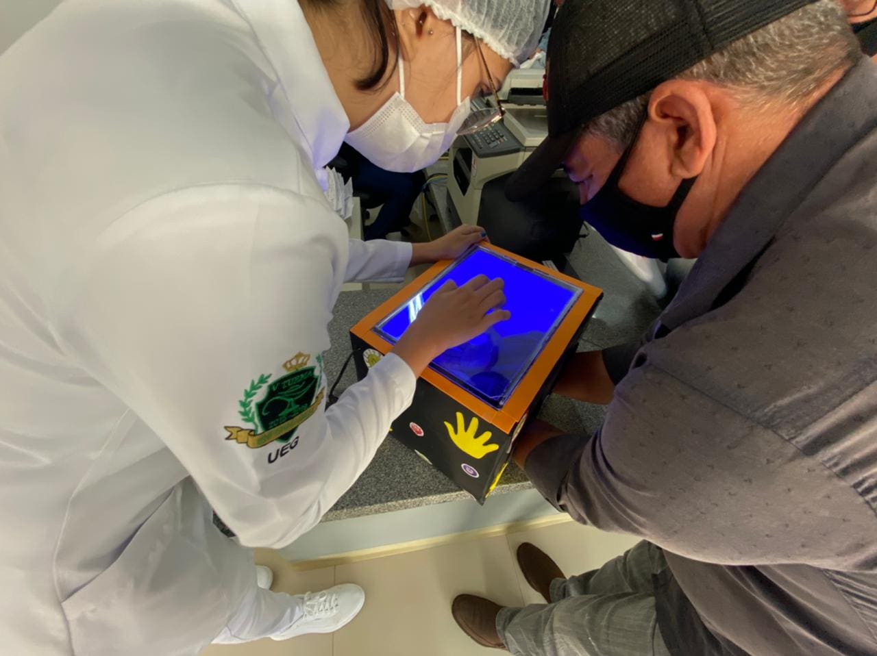 A profissional explica que a dinâmica foi de forma lúdica e com uso de tinta neon. “As mãos do participante foram sujas com a tinta. Após isso, os colaboradores deveriam lavar as mãos da forma que faz no dia a dia. Depois, as mãos eram colocadas dentro de uma caixa e verificado se a lavagem estava correta. Após a dinâmica, fizemos uma demonstração de como deve ser realizada a higienização das mãos” conta.