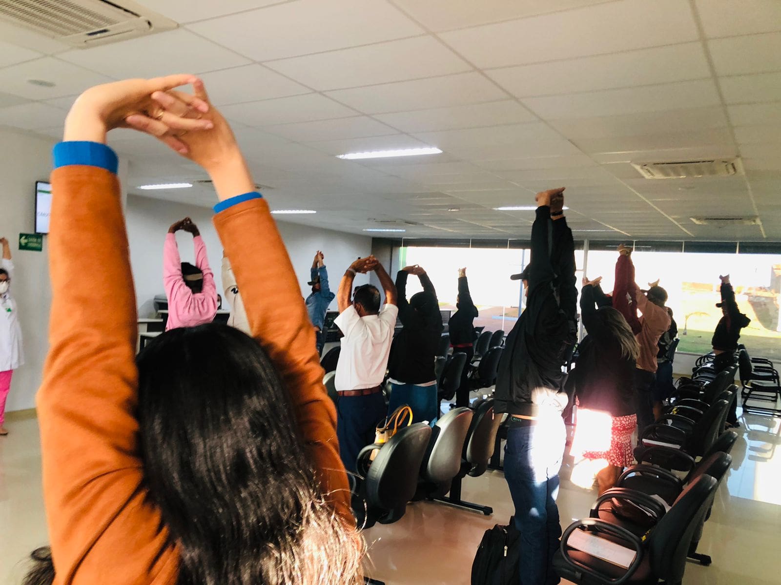 De acordo com Hosana, serão abordados diversos temas, como prevenção de doenças crônicas, comorbidades, campanhas mensais e direitos e deveres dos usuários do SUS. “Hoje, no primeiro dia de execução do projeto, falamos sobre a importância da atividade física, saúde mental, alimentação saudável e realizamos alongamento com os pacientes”, explicou a fisioterapeuta.