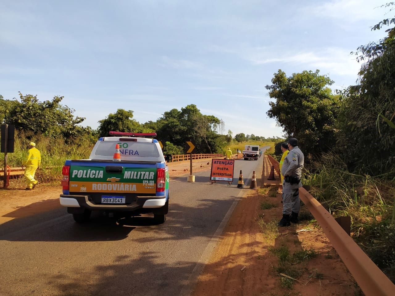 A Goinfra informa que foi necessária a interdição total, para veículos pesados e leves, da ponte sobre o Rio Corrente (Itumirim), na GO-184, entre Aporé e Serranópolis, no último domingo (16/5). O fechamento da estrutura foi preciso para a realização de uma ação que garanta a segurança da população durante a travessia da estrutura.