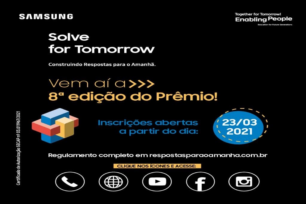 Professores que lecionam disciplinas das áreas de Ciências da Natureza e de Matemática em turmas de Ensino Médio da rede pública podem se inscrever na 8ª edição do prêmio Respostas para o Amanhã até o dia 30 de junho. A iniciativa, desenvolvida pela Samsung e coordenada no Brasil pelo Centro de Estudos e Pesquisas em Educação, Cultura e Ação Comunitária (CENPEC Educação), busca estimular e divulgar projetos de investigação e experimentação científica e/ou tecnológica desenvolvidos por estudantes do Ensino Médio de escolas públicas.