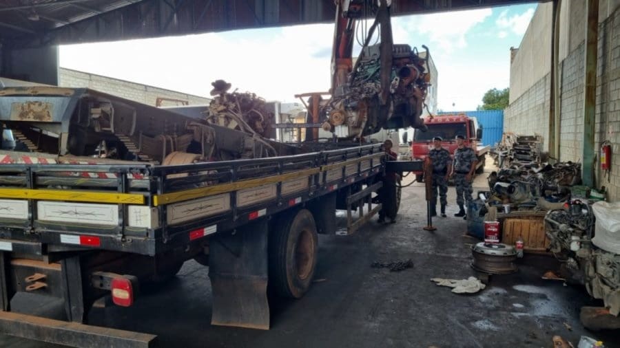 No espaço funcionava uma oficina clandestina de caminhões. Após buscas, as equipes apreenderam sete chassis cortados, três motores sem numeração e vários veículos em reforma. Os três presos durante a ação foram flagrados no momento em que operavam os maquinários usados nas adulterações.