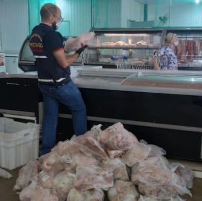 Os fiscais constataram que além do produto não conter etiquetas que demonstravam a procedência e data de validade do produto, a carne também estava mal armazenada e com mau aspecto e mau cheiro. No estabelecimento também foram flagrados outros alimentos impróprios para consumo expostos à venda, tais como, massas de pastéis, salgadinhos e pães.