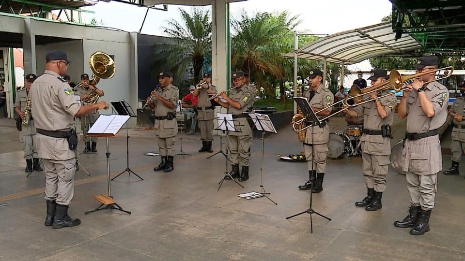A partir de agora, quem passar pelos terminais de ônibus coletivo da Grande Goiânia pode se surpreender com apresentações musicais da Banda da Polícia Militar. O projeto, intitulado Cultura e Segurança, faz parte da Operação Polícia Militar em Ação, e tem o objetivo de levar cultura aos usuários do transporte coletivo. A primeira apresentação aconteceu no Terminal Padre Pelágio, conforme mostrou reportagem do JBC do último sábado (4), e foi aprovada pelos passageiros.