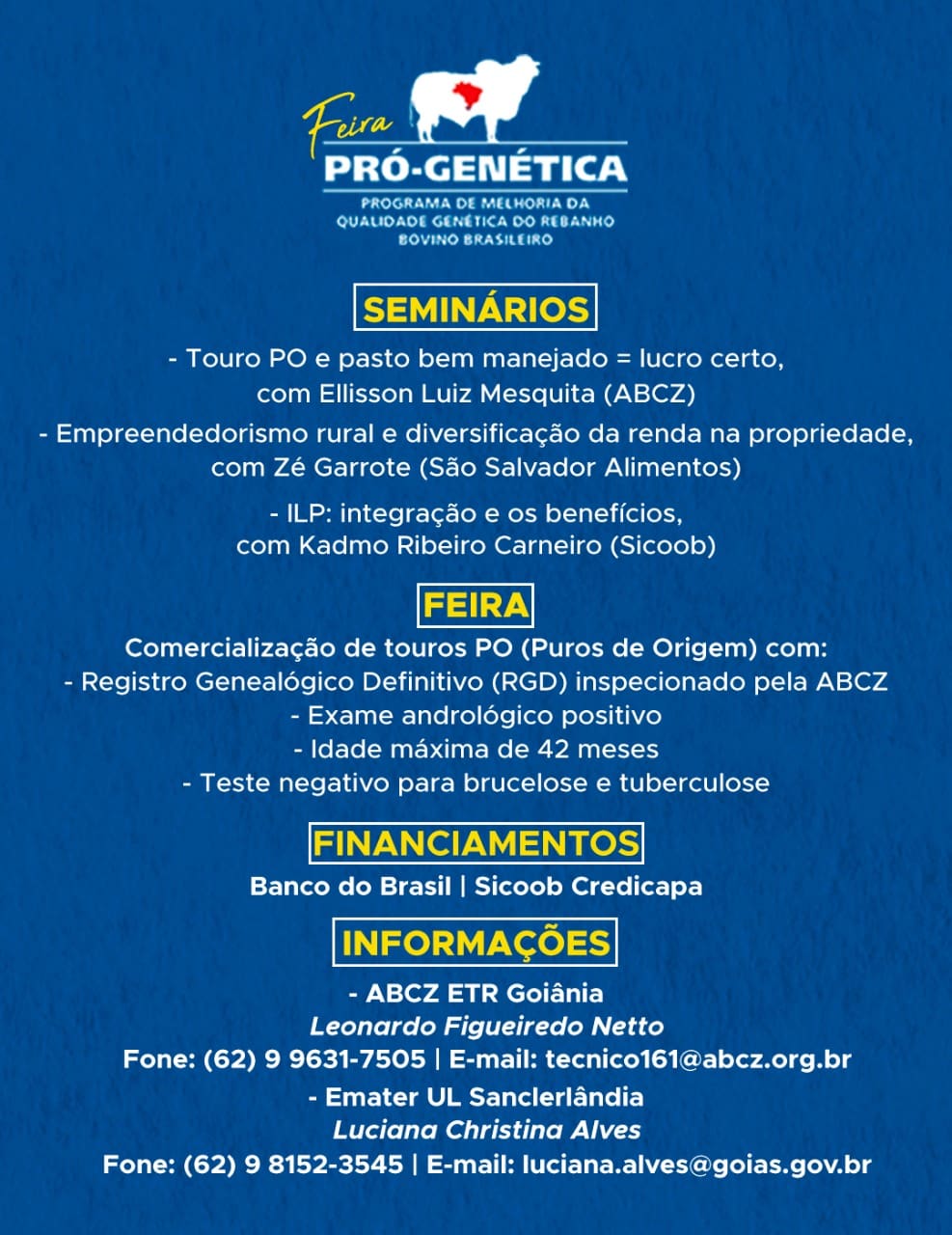 Agro Sanclerlândia | Feira Pró-Genética – Programa de Melhoria da Qualidade Genética do Rebanho Bovino Brasileiro