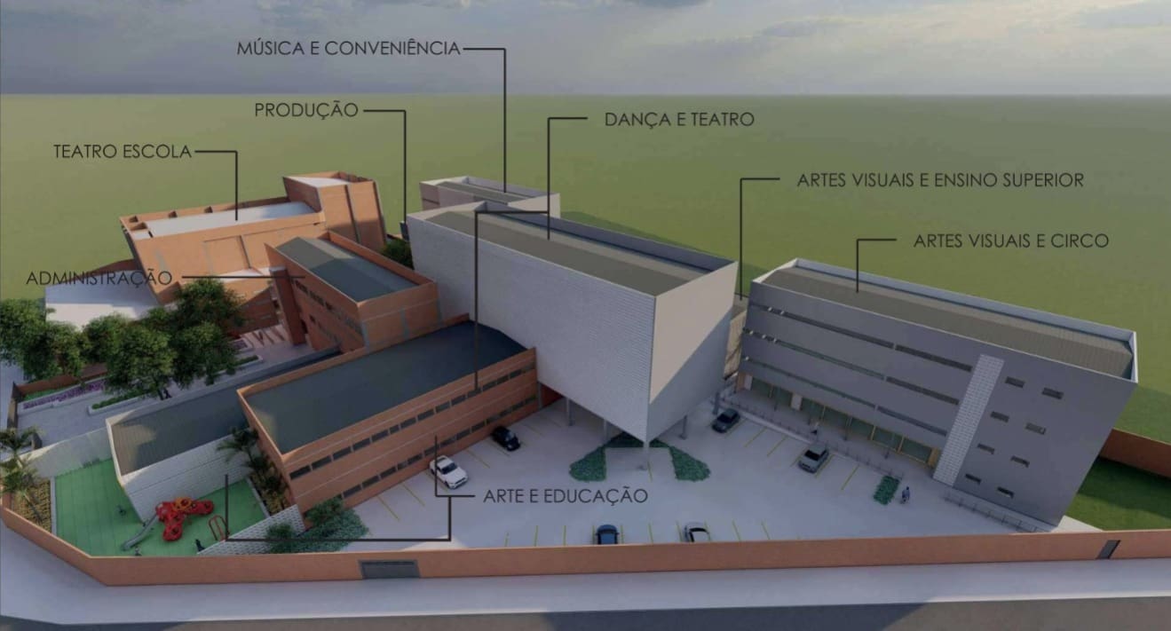 As atividades circenses ficarão no bloco 3. Por fim, no bloco 4, funcionarão os projetos de Arte e Educação, miniauditório, administração e Teatro e Dança.