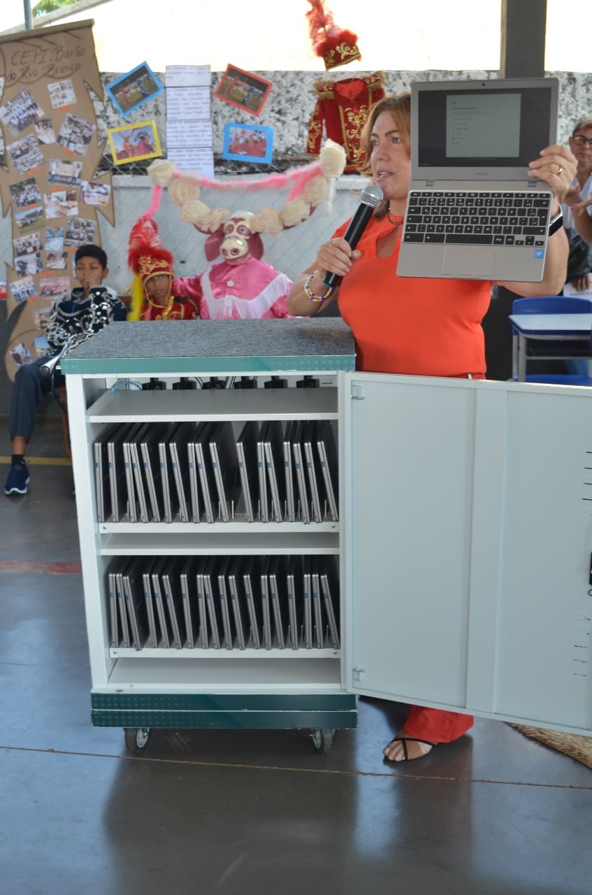 Para ampliar as possibilidades do uso pedagógico da tecnologia, o Governo de Goiás, por meio da Secretaria de Estado da Educação (Seduc), investiu R$ 130 milhões na aquisição de 951 laboratórios móveis de Informática. Cada escola recebe um laboratório, composto por 44 chromebooks, sendo 36 para uso dos alunos e oito para os professores. Os equipamentos começaram a ser entregues durante o mês de julho e a previsão é de que até o final deste mês, as unidades escolares contempladas já tenham os laboratórios à disposição.