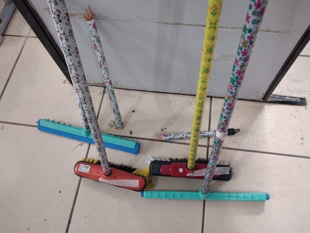 Servidores da Unidade Prisional (UP) de Goianésia encontraram, na manhã da última segunda-feira (08), porções de substância esverdeada, análoga à maconha, escondidas dentro de cabos de rodos e vassouras que foram deixados no presídio durante a cobal, data em que familiares levam mantimentos e itens de higiene para serem repassados aos detentos. Os custodiados destinatários das drogas foram identificados e, em seguida, encaminhados à Delegacia de Polícia Civil da cidade para as providências cabíveis na forma da lei.