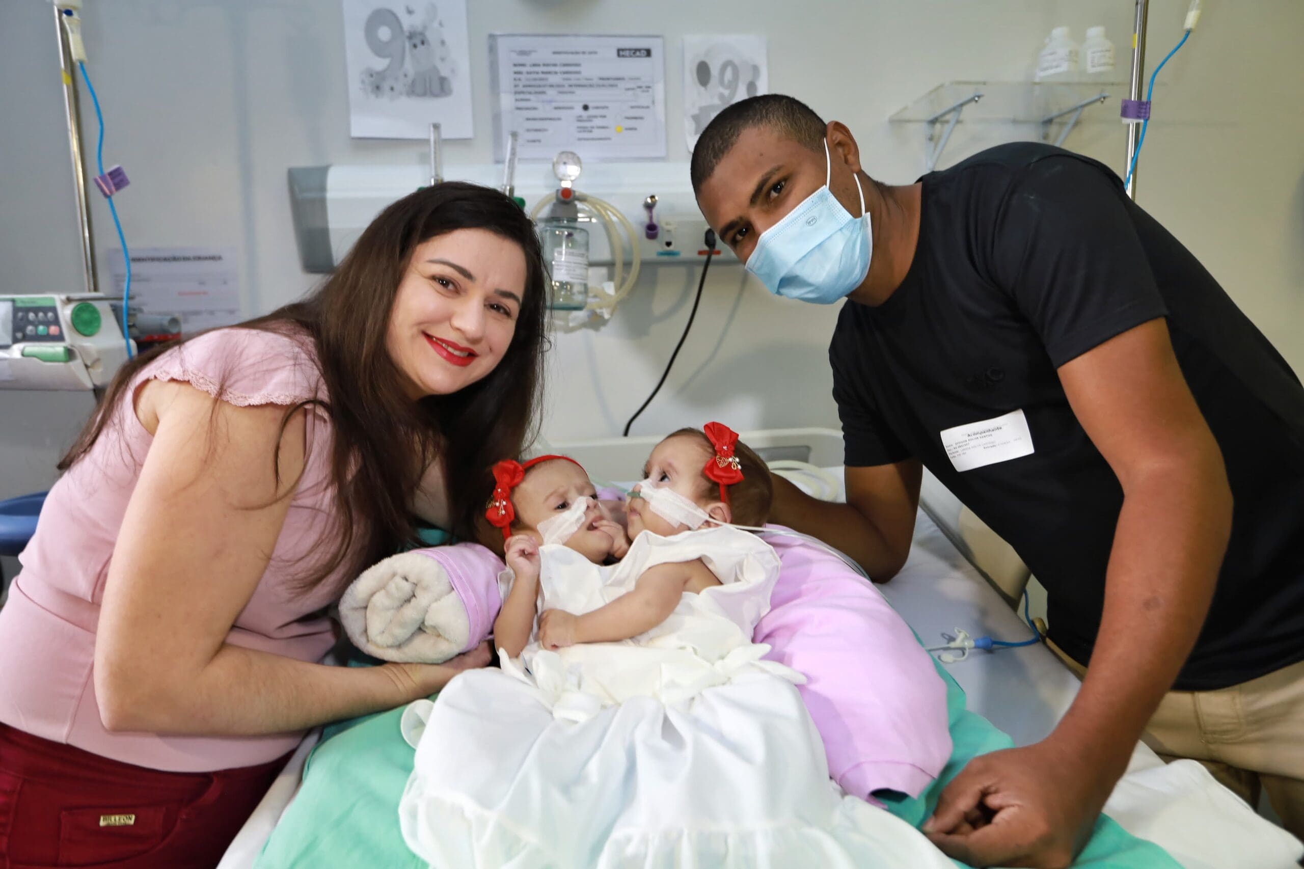 “As gêmeas estão com 3,9 quilos cada uma e superaram todas as adversidades, que não foram poucas”, disse a médica. “Lara e Larissa passaram por várias internações em UTI, sofreram parada cardiorrespiratória, diversos episódios de dilatação anal, síndrome do desconforto respiratório, hipertensão pulmonar, sepse e venceram tudo isso”, afirmou a profissional.